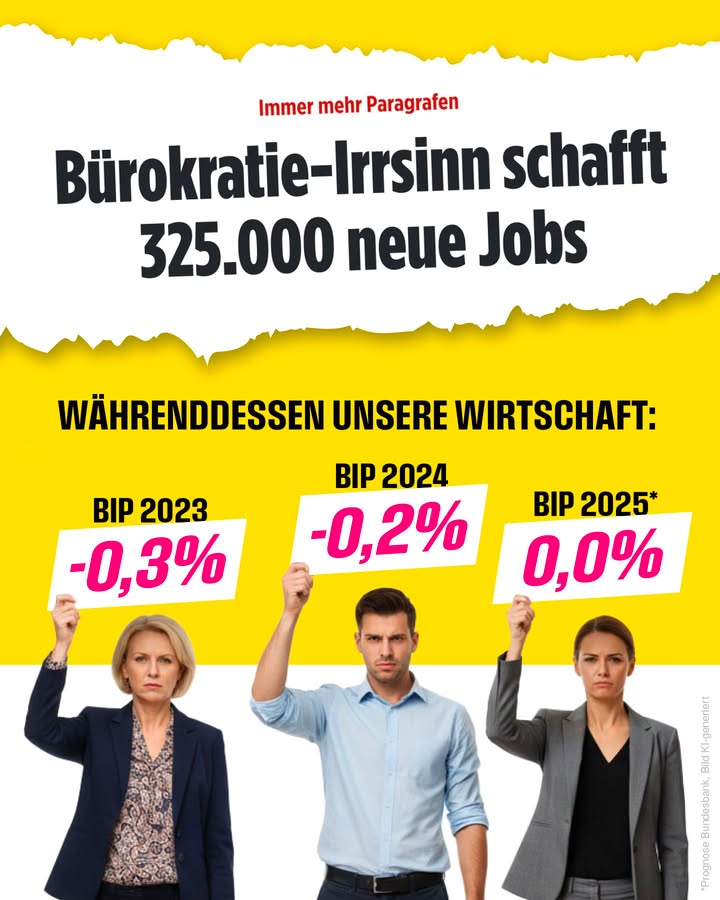 Um gegen die Bürokratie anzukämpfen, mussten deutsche Betriebe laut einer IAB-Studie in den letzten Jahren 325.000 zusätzliche Stellen schaffen. Dabei steckt Deutschland tief in einer Wirtschaftskrise. Das zeigt: Wir müssen Bürokratie endlich radikal abbauen.